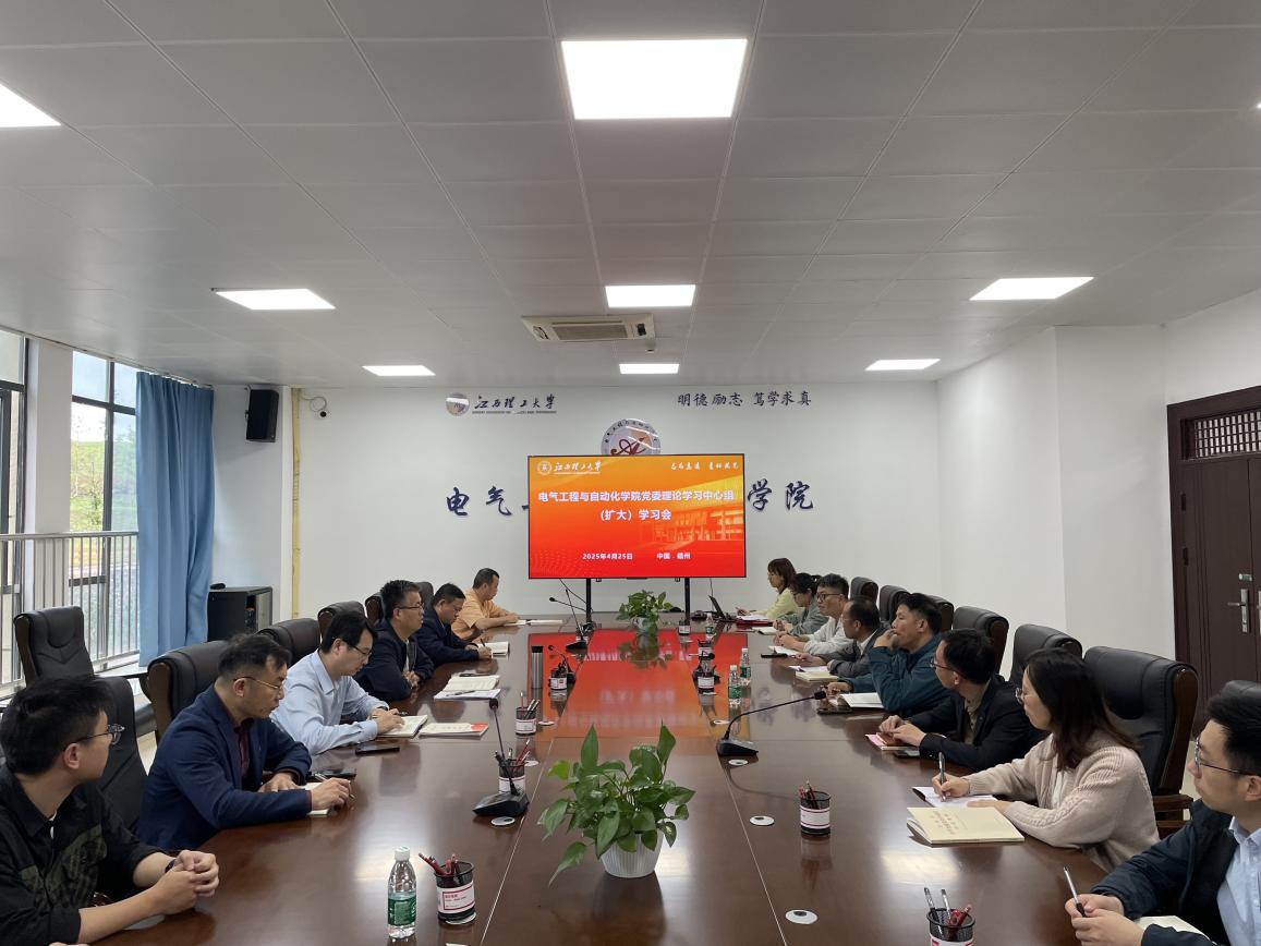 4月25日,电气学院党委理论学习中心组(扩大)会议在智汇楼220会议室召开,围绕“深入贯彻中央八项规定精神学习教育,推进作风建设走深走实”主题开展集中学习研讨。电气学院党委委员和各党支部书记参加会议,会议由学院党委书记于仲安主持。