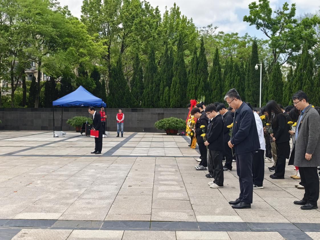 随后,全体师生依次走到纪念碑前,将手中饱含缅怀之情的菊花轻轻敬献于碑座四周,并绕行瞻仰纪念碑,追思革命先辈的奋斗历程和光辉事迹。