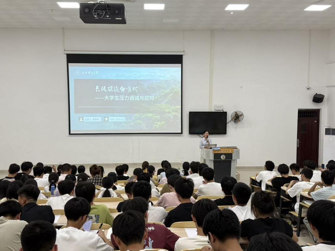 为帮助同学们更好地了解自身压力状况,郭老师还引导大家进行了压力自我评估环节。在压力应对方法讲解部分,郭主任从认知层面、情绪层面、行为层面三个维度给出了建议。在认知层面,倡导同学们树立积极的压力观,学会理性看待压力,将压力转化为前进的动力;在情绪层面,分享了情绪调节的小技巧,如合理宣泄、积极暗示等,帮助同学们及时疏导负面情绪;在行为层面,建议同学们通过规律运动、培养兴趣爱好、合理规划时间等方式缓解压力,保持良好的身心状态。