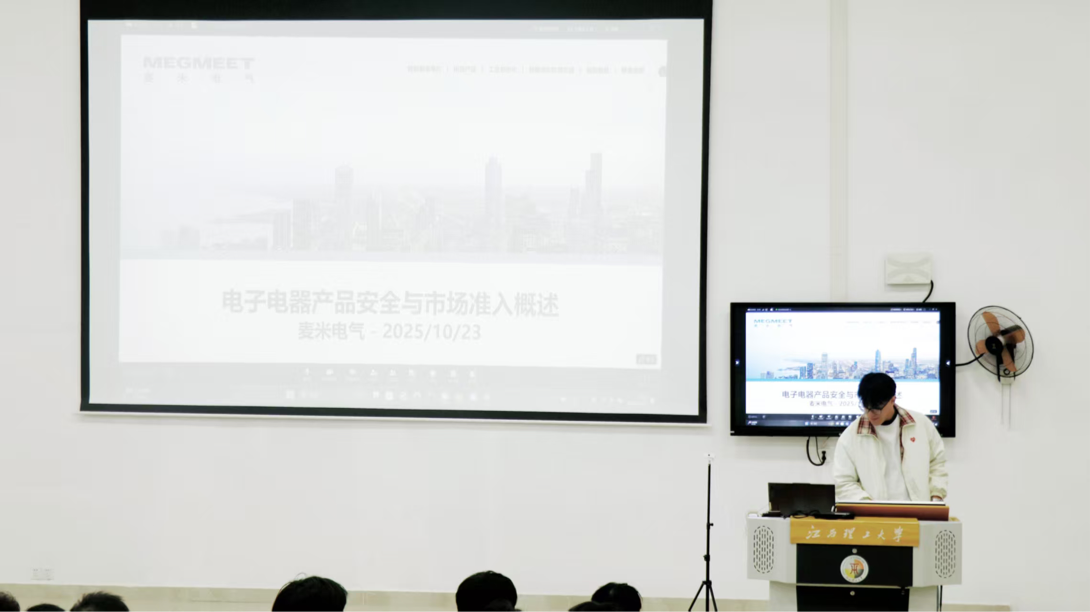 在法规体系方面,讲师Leo Li介绍IEC、ISO、ITU等组织及CB体系,帮助同学们了解各国安规认证体系与推行意义;随后由浅入深划分安规设计评估维度,结合麦米电气实际案例,具象展示产品满足各国安规要求的过程,帮助其理解底层逻辑与互认机制。论述市场准入时,他科普常见认证资质体系、机构、标志及全球情况,展示麦米电气实验室相关资质证书,采用互动式教学解答疑问,并通过事例教同学识别产品图标上的国家认证。讲述监督与维护时,引用法规强调国家监管要求,阐述企业“人、机、料、法、测、环”的响应安排,进而引出认证流程,涵盖咨询、报价、测试、工厂检查和发证五个环节。