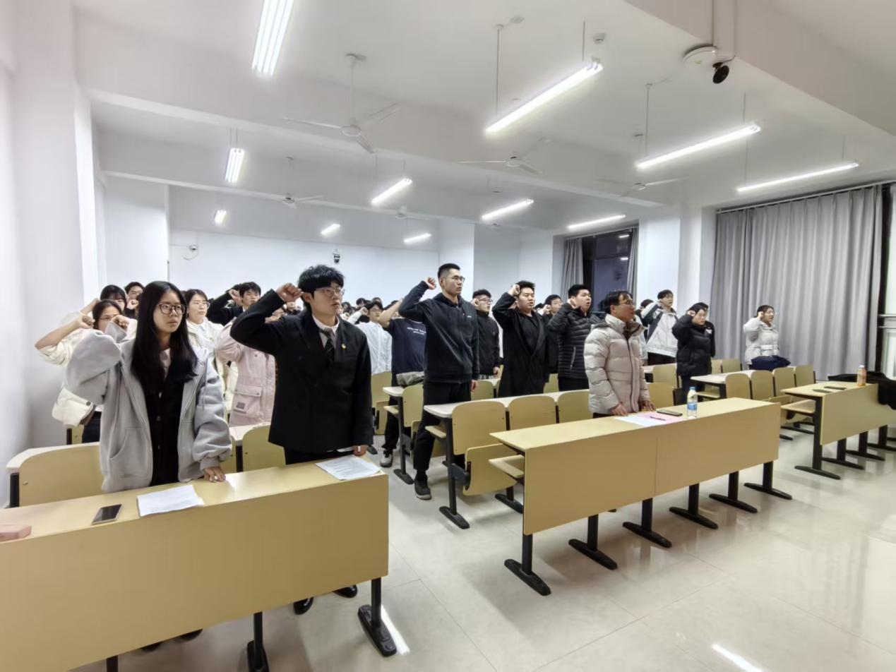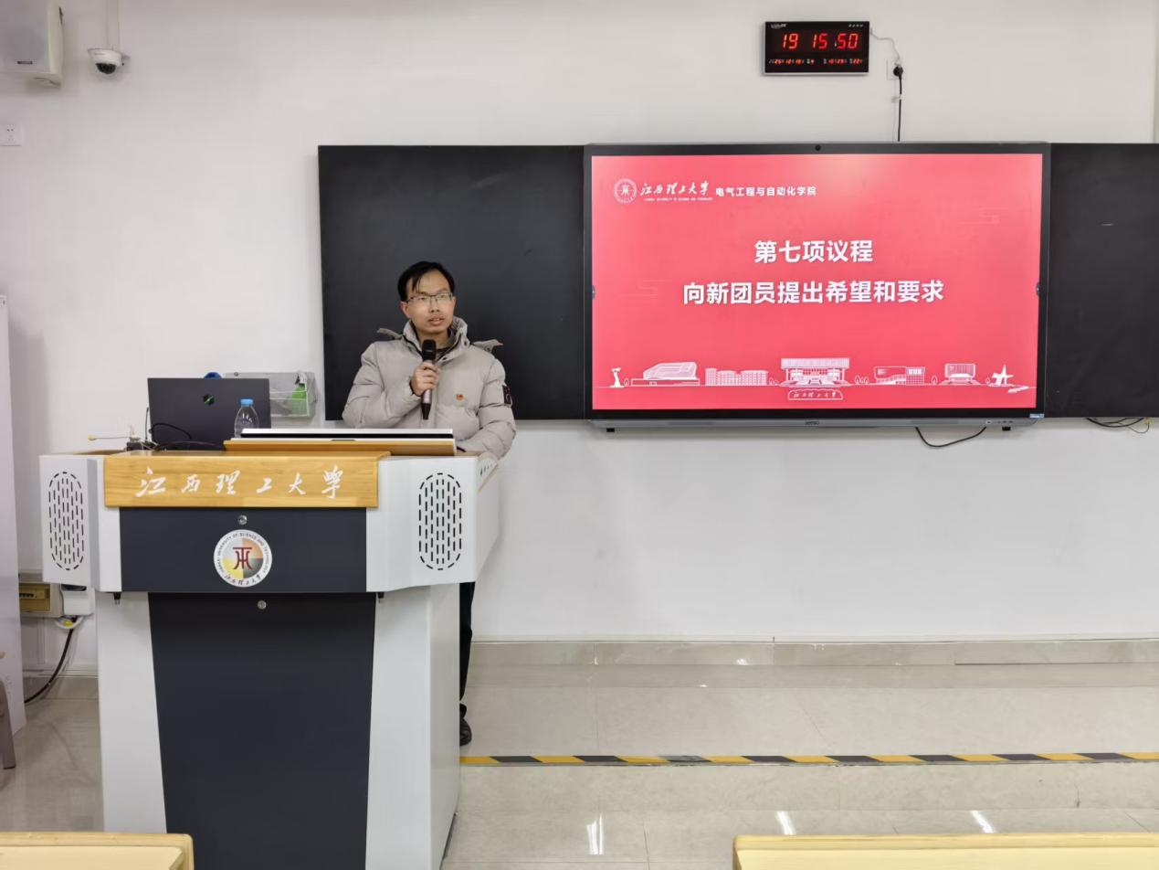 青春逢盛世,奋斗正当时。 12 月 18 日,电气学院 2025 年新团员入团仪式在阅道楼128教室隆重举行。本次仪式旨在传承共青团的光荣传统,引导新团员坚定理想信念,肩负青春使命,为共产主义事业不懈奋斗。学院团委书记曾良仔、学生代表及全体新团员共同出席,见证了这一庄严而意义非凡的时刻。