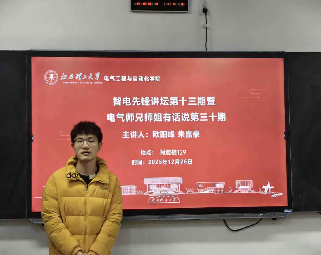为促进形成良好的学习氛围,解答成长疑惑, 12月26日,电气学院在阅道楼129教室举行电气师兄师姐有话说第三十期活动。本次活动邀请电气224朱家豪、电气223欧阳锋分享大学成长感悟与保研经验,激励同学们在大学成长中砥砺前行。